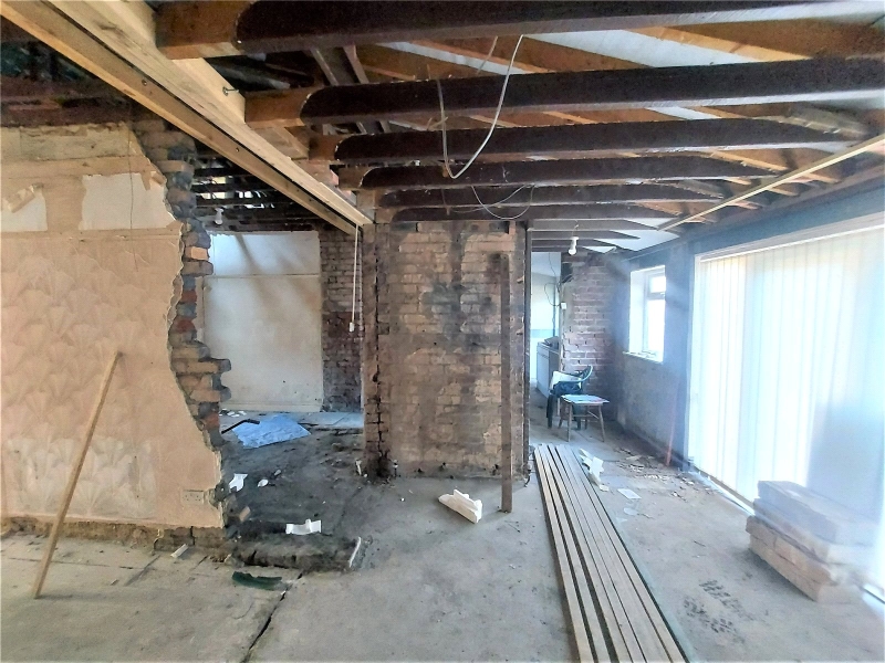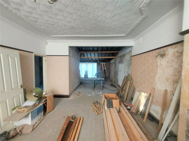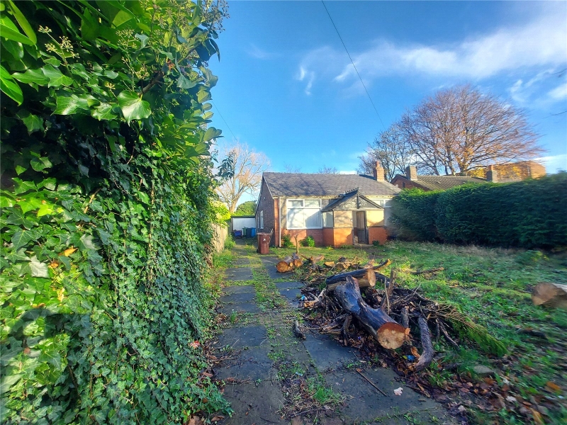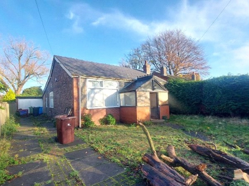 A rare opportunity to purchase this large plot, comprising of main property, outbuildings and large gardens. The main building has largely been taken back to brick and ready for development of a generous open plan bungalow. It is currently configured as porch, hallway, 2 bedrooms, bathroom and huge open plan living area and kitchen area. As a blank canvas, the space could reconfigured to suit new owners plans/requirements. To the front of the property is a large private garden with driveway leading to garage and rear of the property. At the rear is flagged area leading to a brick-built workshop/summer house and two distinct garden areas. The furthest garden is separated by conifers with rear access to main road. There could be a potential development opportunity subject to approval by Knowsley Planning Department. There has been previous planning granted at this site.