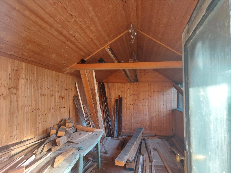 Outside: To the front is large private garden with driveway leading to garage and rear of the property. At the rear is flagged area leading to brick-built workshop/summer house and two garden areas.