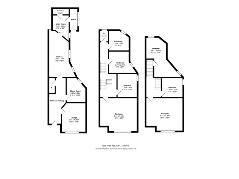 First Floor: Split level landing, bathroom, separate w.c, three bedrooms