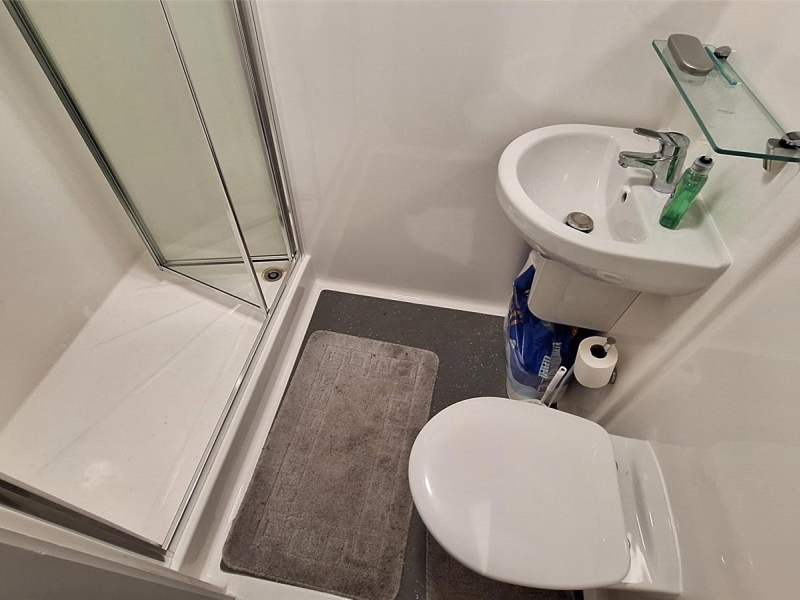 Fourth Floor: Hallway area, shower room, bedroom space, kitchen/living room
