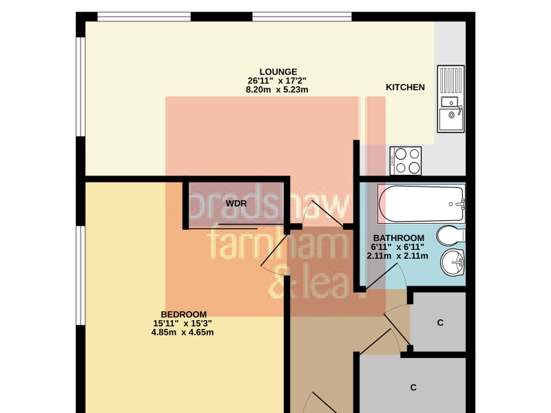 Fourth Floor: Inner hallway, large combined kitchen/diner/living room, bedroom with built in wardrobes, bathroom, x2 storage spaces